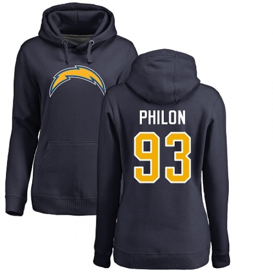 NFL Women's Nike Los Angeles Chargers #93 Darius Philon Navy Blue Name & Number Logo Pullover Hoodie