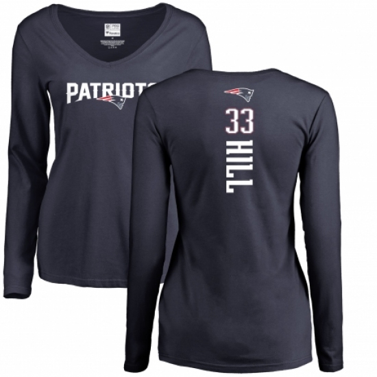 >NFL Women's Nike New England Patriots #33 Jeremy Hill Navy Blue Backer Slim Fit Long Sleeve T-Shirt