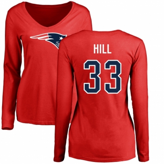 >NFL Women's Nike New England Patriots #33 Jeremy Hill Red Name & Number Logo Slim Fit Long Sleeve T-Shirt