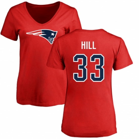 >NFL Women's Nike New England Patriots #33 Jeremy Hill Red Name & Number Logo Slim Fit T-Shirt