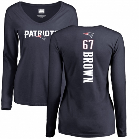 >NFL Women's Nike New England Patriots #67 Trent Brown Navy Blue Backer Slim Fit Long Sleeve T-Shirt