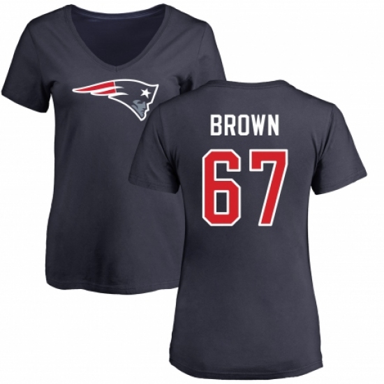 >NFL Women's Nike New England Patriots #67 Trent Brown Navy Blue Name & Number Logo Slim Fit T-Shirt