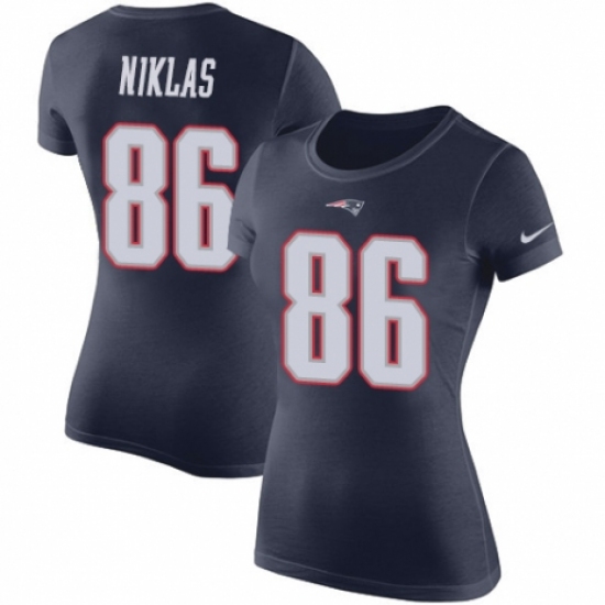 NFL Women's Nike New England Patriots #86 Troy Niklas Navy Blue Rush Pride Name & Number T-Shirt
