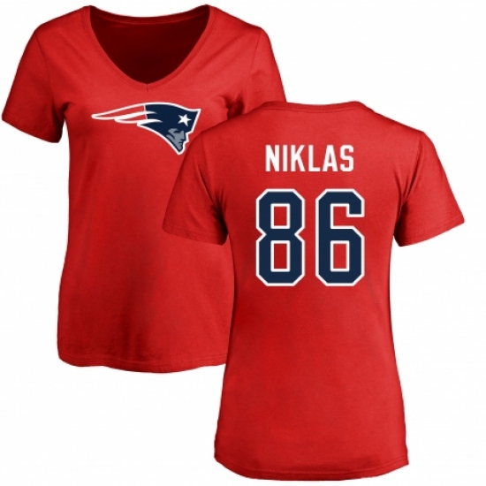 >NFL Women's Nike New England Patriots #86 Troy Niklas Red Name & Number Logo Slim Fit T-Shirt