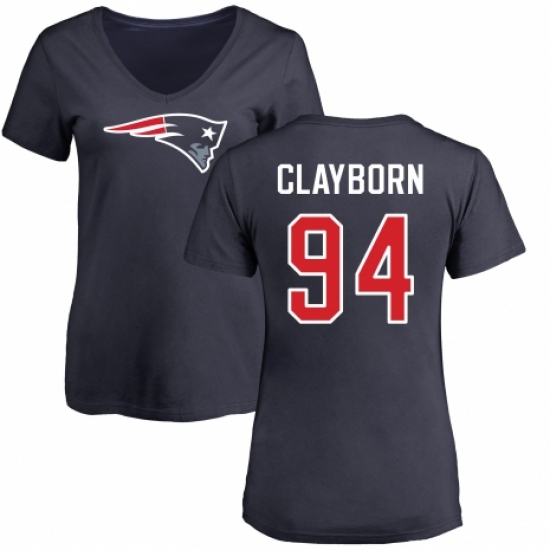 >NFL Women's Nike New England Patriots #94 Adrian Clayborn Navy Blue Name & Number Logo Slim Fit T-Shirt