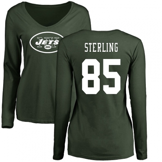 NFL Women's Nike New York Jets #85 Neal Sterling Green Name & Number Logo Long Sleeve T-Shirt