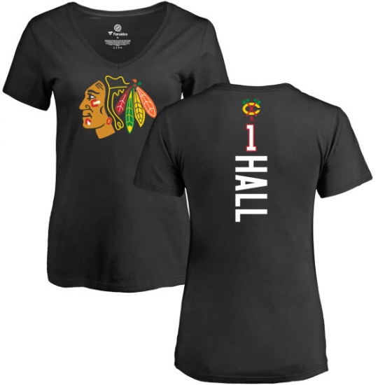 >NHL Women's Adidas Chicago Blackhawks #1 Glenn Hall Black Backer T-Shirt