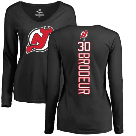 >NHL Women's Adidas New Jersey Devils #30 Martin Brodeur Black Backer Long Sleeve T-Shirt