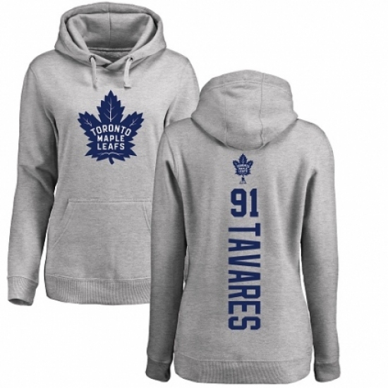 >NHL Women's Adidas Toronto Maple Leafs #91 John Tavares Ash Backer Pullover Hoodie