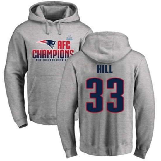 >Nike New England Patriots #33 Jeremy Hill Heather Gray 2017 AFC Champions Pullover Hoodie