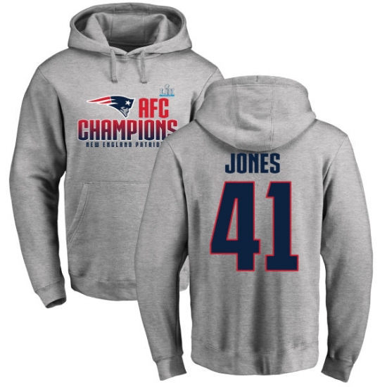 >Nike New England Patriots #41 Cyrus Jones Heather Gray 2017 AFC Champions Pullover Hoodie
