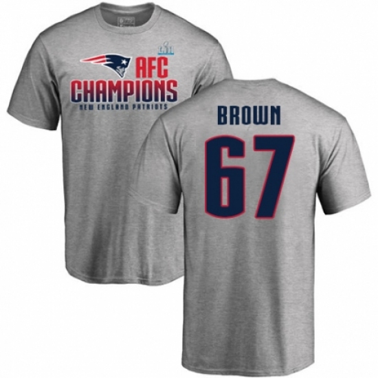 >Nike New England Patriots #67 Trent Brown Heather Gray 2017 AFC Champions V-Neck T-Shirt