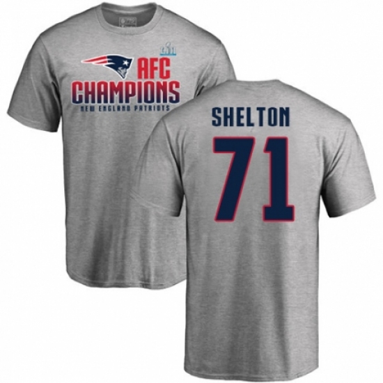 >Nike New England Patriots #71 Danny Shelton Heather Gray 2017 AFC Champions V-Neck T-Shirt