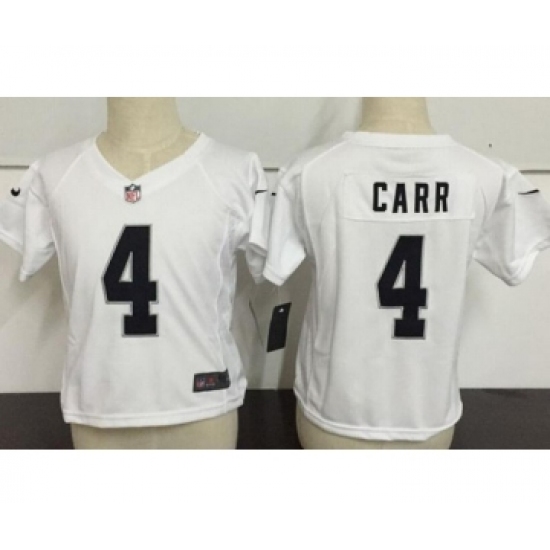 >Toddler Oakland Raiders #4 Derek Carr White Road Stitched NFL Nike Game Jersey