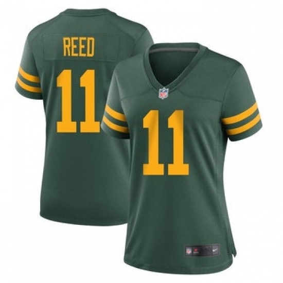 >Women Green Bay Packers #11 Jayden Reed Green Throwback Vapor Untouchable Stitched Jersey