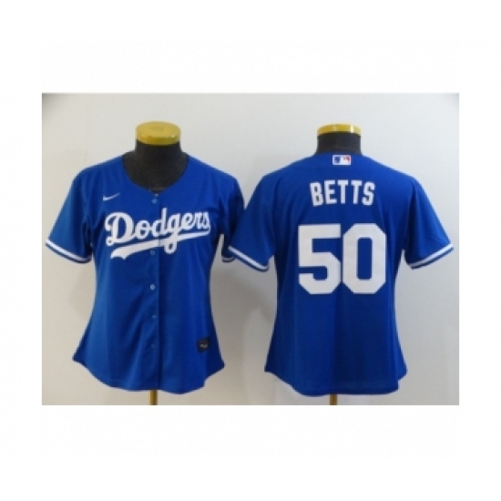 >Women Los Angeles Dodgers #50 Mookie Betts Royal 2020 Cool Base Jersey