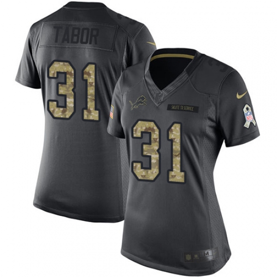 >Women Nike Detroit Lions #31 Teez Tabor Limited Black 2016 Salute to Service NFL Jersey