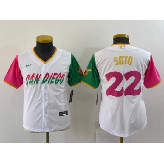 >Women San Diego Padres #22 Juan Soto White 2022 City Connect Cool Base Stitched Jersey