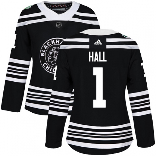 Women's Adidas Chicago Blackhawks #1 Glenn Hall Authentic Black 2019 Winter Classic NHL Jersey