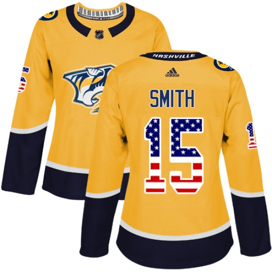Home>NHL>Nashville Predators>Craig Smith>Women's Adidas Nashville Predators #15 Craig Smith Authentic Gold USA Flag Fashion NHL Jersey