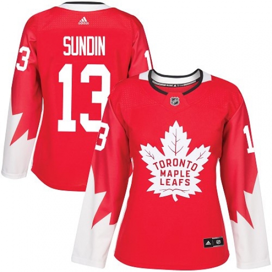 Home>NHL>Toronto Maple Leafs>Mats Sundin>Women's Adidas Toronto Maple Leafs #13 Mats Sundin Authentic Red Alternate NHL Jersey