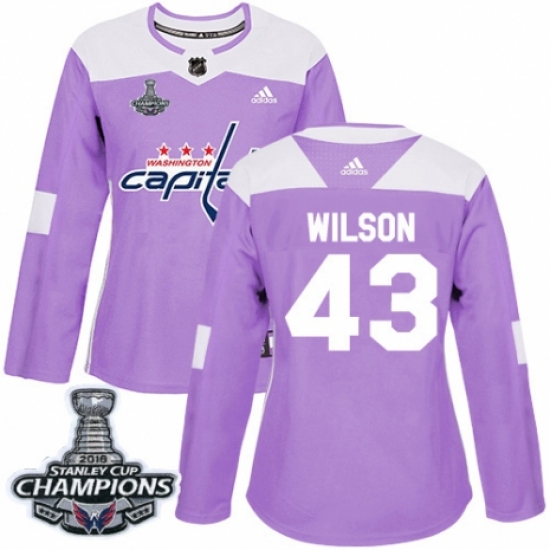 >Women's Adidas Washington Capitals #43 Tom Wilson Authentic Purple Fights Cancer Practice 2018 Stanley Cup Final Champions NHL Jersey