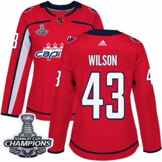 Women's Adidas Washington Capitals #43 Tom Wilson Authentic Red Home 2018 Stanley Cup Final Champions NHL Jersey