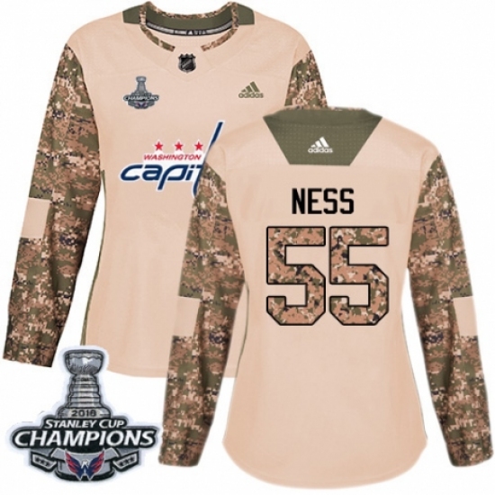 >Women's Adidas Washington Capitals #55 Aaron Ness Authentic Camo Veterans Day Practice 2018 Stanley Cup Final Champions NHL Jersey