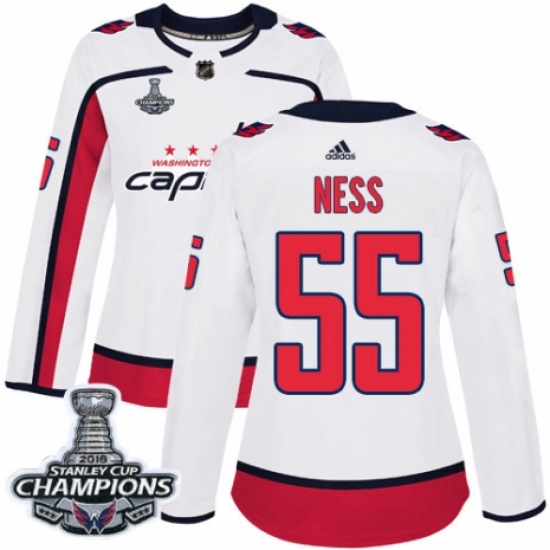 Women's Adidas Washington Capitals #55 Aaron Ness Authentic White Away 2018 Stanley Cup Final Champions NHL Jersey