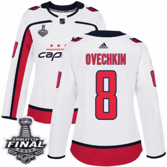 Women's Adidas Washington Capitals #8 Alex Ovechkin Authentic White Away 2018 Stanley Cup Final NHL Jersey