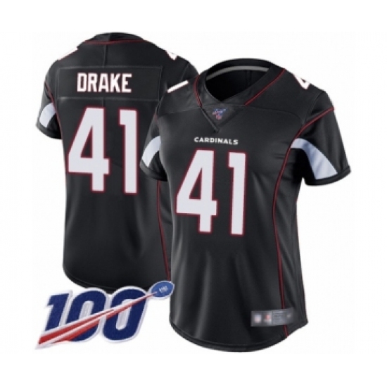 Women's Arizona Cardinals #41 Kenyan Drake Black Alternate Vapor Untouchable Limited Player 100th Season Football Jersey