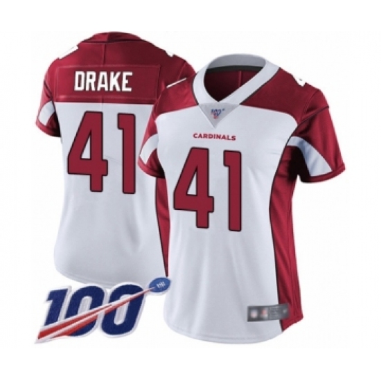 >Women's Arizona Cardinals #41 Kenyan Drake White Vapor Untouchable Limited Player 100th Season Football Jersey
