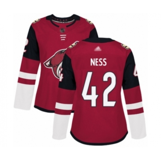 >Women's Arizona Coyotes #42 Aaron Ness Authentic Burgundy Red Home Hockey Jersey