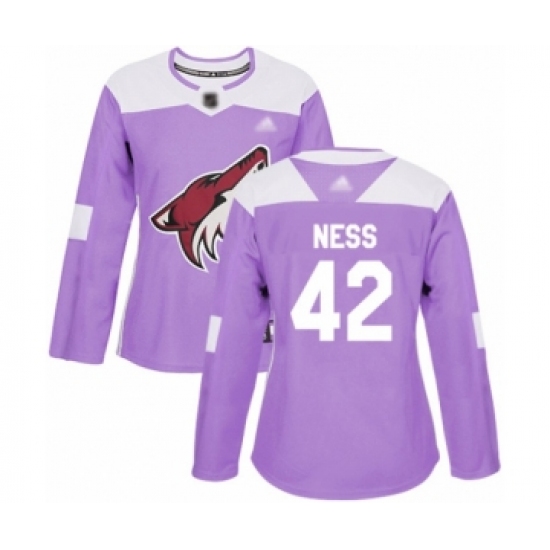 >Women's Arizona Coyotes #42 Aaron Ness Authentic Purple Fights Cancer Practice Hockey Jersey