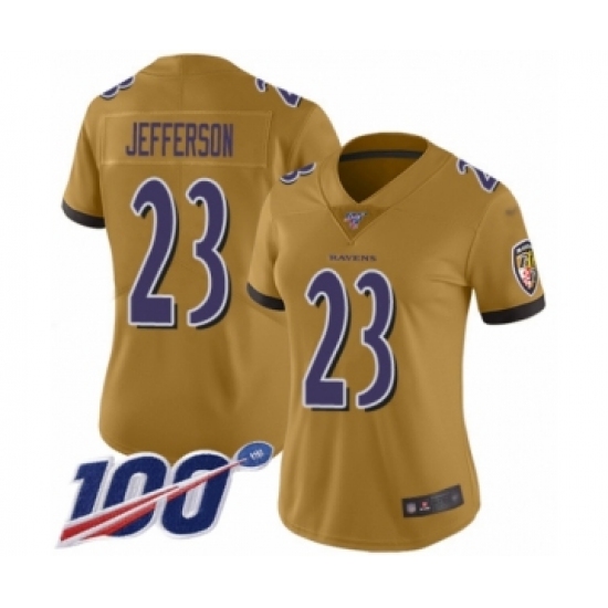 >Women's Baltimore Ravens #23 Tony Jefferson Limited Gold Inverted Legend 100th Season Football Jersey
