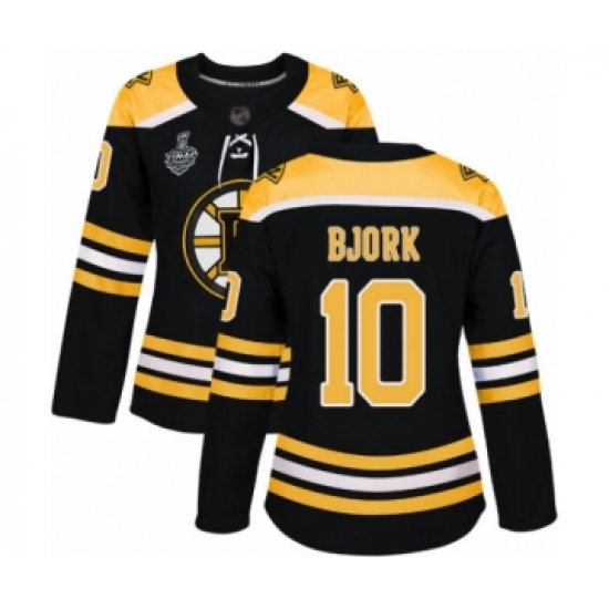 Women's Boston Bruins #10 Anders Bjork Authentic Black Home 2019 Stanley Cup Final Bound Hockey Jersey