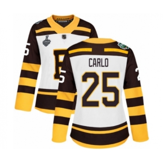 Women's Boston Bruins #25 Brandon Carlo Authentic White Winter Classic 2019 Stanley Cup Final Bound Hockey Jersey