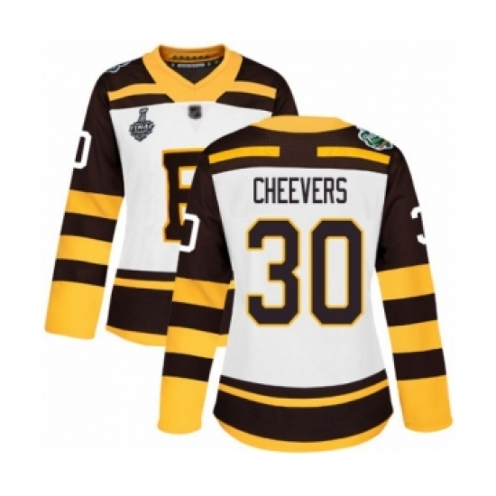 Women's Boston Bruins #30 Gerry Cheevers Authentic White Winter Classic 2019 Stanley Cup Final Bound Hockey Jersey