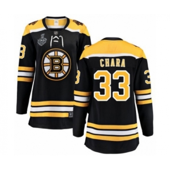 >Women's Boston Bruins #33 Zdeno Chara Authentic Black Home Fanatics Branded Breakaway 2019 Stanley Cup Final Bound Hockey Jersey