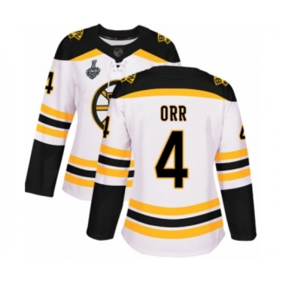 Women's Boston Bruins #4 Bobby Orr Authentic White Away 2019 Stanley Cup Final Bound Hockey Jersey