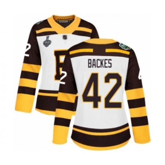 >Women's Boston Bruins #42 David Backes Authentic White Winter Classic 2019 Stanley Cup Final Bound Hockey Jersey