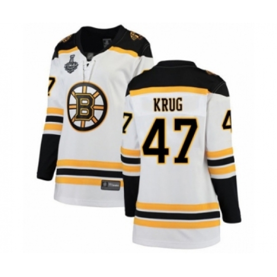 Women's Boston Bruins #47 Torey Krug Authentic White Away Fanatics Branded Breakaway 2019 Stanley Cup Final Bound Hockey Jersey