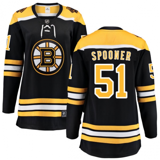 Home>NHL>Boston Bruins>Ryan Spooner>Women's Boston Bruins #51 Ryan Spooner Authentic Black Home Fanatics Branded Breakaway NHL Jersey
