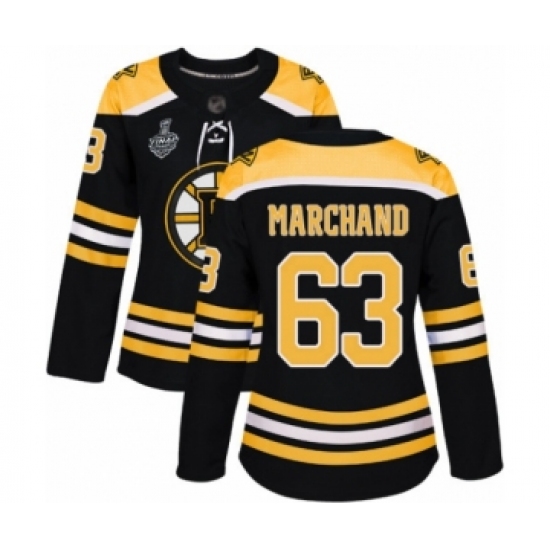 Women's Boston Bruins #63 Brad Marchand Authentic Black Home 2019 Stanley Cup Final Bound Hockey Jersey