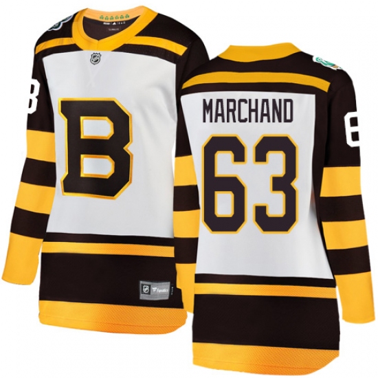 >Women's Boston Bruins #63 Brad Marchand White 2019 Winter Classic Fanatics Branded Breakaway NHL Jersey