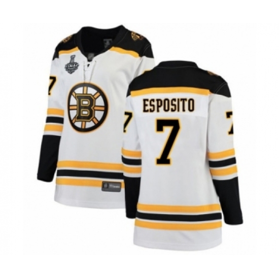 Women's Boston Bruins #7 Phil Esposito Authentic White Away Fanatics Branded Breakaway 2019 Stanley Cup Final Bound Hockey Jersey