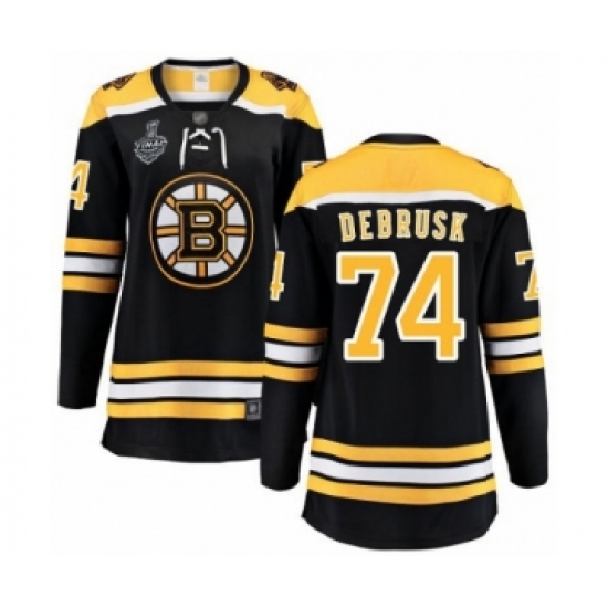 Women's Boston Bruins #74 Jake DeBrusk Authentic Black Home Fanatics Branded Breakaway 2019 Stanley Cup Final Bound Hockey Jersey