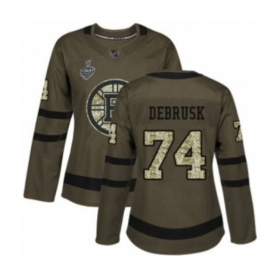 Women's Boston Bruins #74 Jake DeBrusk Authentic Green Salute to Service 2019 Stanley Cup Final Bound Hockey Jersey