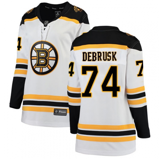 Home>NHL>Boston Bruins>Jake DeBrusk>Women's Boston Bruins #74 Jake DeBrusk Authentic White Away Fanatics Branded Breakaway NHL Jersey