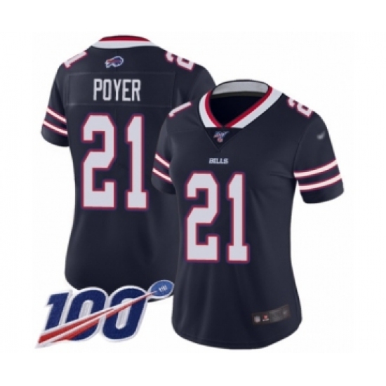 >Women's Buffalo Bills #21 Jordan Poyer Limited Navy Blue Inverted Legend 100th Season Football Jersey
